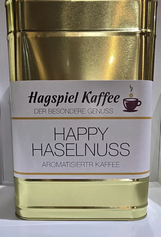 Charakter und Geschmack Das feine Aroma der Kaffeebohne des Röstkaffees ergänzt sich perfekt mit dem hinzugefügten Haselnussaroma – für den Abwechslung liebenden Kaffee-Genießer ist unser „Happy Haselnuss“ ein aufregendes Geschmackserlebnis! Ein Tipp: Servieren Sie den „Happy Haselnuss“ als krönenden Ausklang ihres Festmahls! Zutaten: Röstkaffee (100 % Arabica), Aroma.