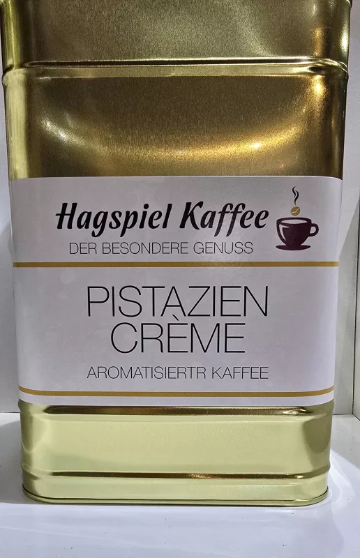 Charakter und Geschmack Es zeigt sich einmal mehr, wie wundervoll die Aromen von Nuss und Kaffee harmonieren! Ein herrlich nussiges Pistazien-Aroma vereint mit dem vollmundigen, weichen Geschmack von Sahne wird auch Sie begeistern! Gönnen Sie sich eine kleine Auszeit und genießen Sie diesen besonderen Kaffeegeschmack. Zutaten: Röstkaffee (100 % Arabica), Aroma.