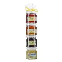 Haus- & Handgemachte Marmeladen und Honige. Nur beste Zutaten. 4 x 50g Gläser mit weißem Deckel. Verpackt mit Klarsichtfolie und Bändchen.